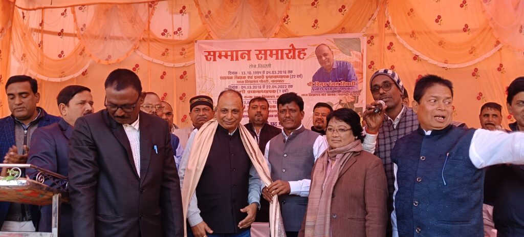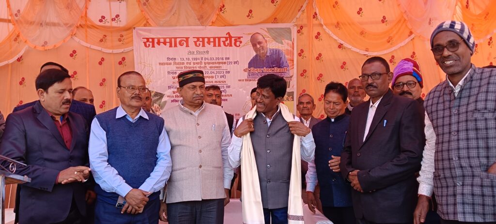 कार्यक्रम के मुख्य अतिथि बाघमारा विधायक शत्रुघ्न महतो उर्फ शरद दा ने सेवानिवृत्त शिक्षक विनय रंजन तिवारी के योगदान की सराहना करते हुए कहा कि उन्होंने अपने पूरे जीवन में शिक्षा का अलख जगाया।विधायक ने कहा कि “विनय रंजन तिवारी ने बच्चों को न सिर्फ किताबी ज्ञान दिया, बल्कि उन्हें संस्कार और अनुशासन भी सिखाया। उन्होंने शिक्षक की मर्यादा का पूरी निष्ठा से निर्वहन किया और हर जगह अपनी अमिट छाप छोड़ी।”इस अवसर पर विधायक शत्रुघ्न महतो ने शॉल ओढ़ाकर और बुके भेंट कर तिवारी सर को सम्मानित किया।